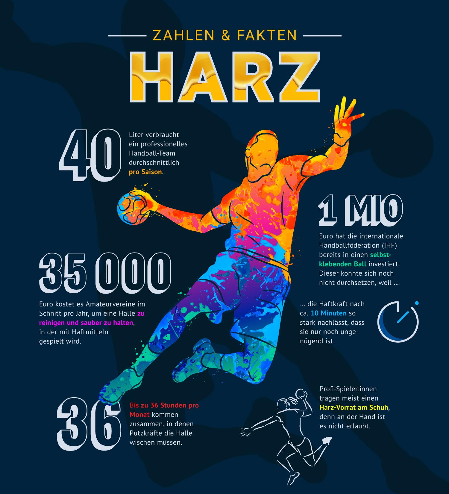 Die Debatte um Harz wird immer wieder aufkommen, solange es kein exzellentes Ersatzmittel geben wird. Ohle selbst kann sich Handball ohne Harz nicht vorstellen: „Das Handball-Publikum kommt in die Hallen, um ein schnelles und attraktives Spiel zu sehen. Ohne den Einsatz von Harz würde der Handball womöglich wieder um Jahrzehnte zurückgeworfen werden.“ Die Folge: Weniger Publikum bei Großveranstaltungen wie der nun startenden EM. Weniger Publikum ist gleichbedeutend mit weniger Sponsoren und weniger Geld, das umgesetzt wird.