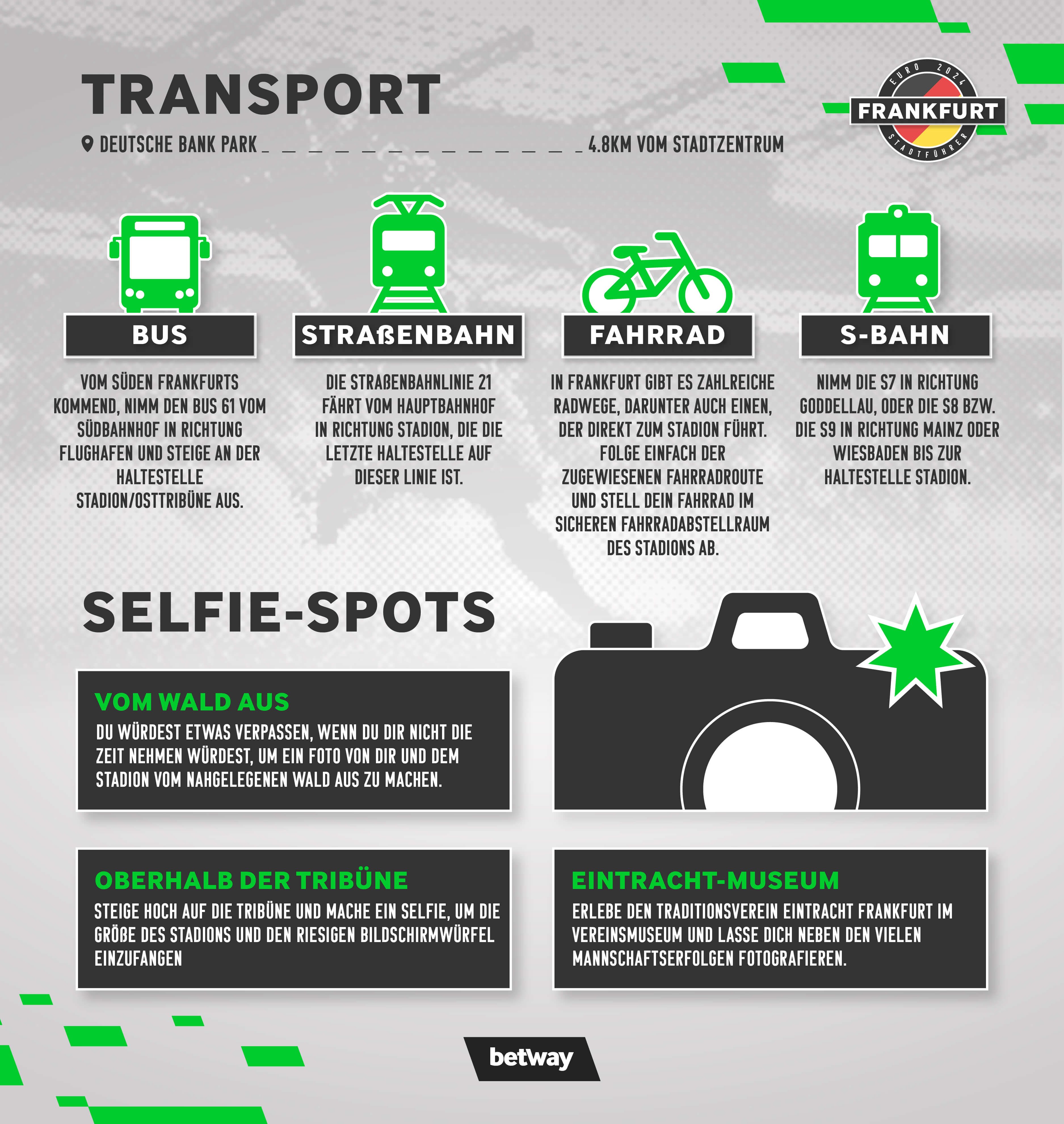 So, das war’s auch schon fast mit unserem Reiseführer für die Euro 2024 in Frankfurt. Jetzt müssen wir nur noch ein paar Zusatzinfos preisgeben und schon kann es losgehen!